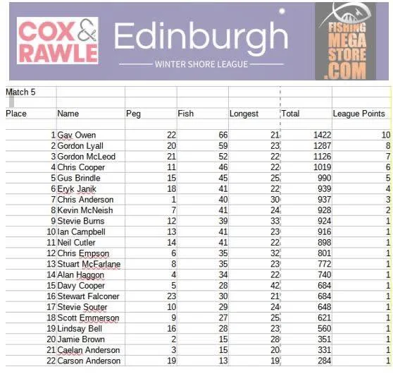 Want to stay up to date on the Winter Shore League? You can find all the information and updates on Edinburgh Angling Centre’s Facebook Page – If you want to check out the latest deals we have on offer check out our website and also sign up to our E-Mail offers too.