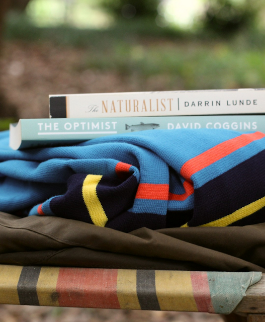 vintage rugby shirts, fishing catalogs, and camping gear from past